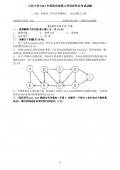 230兰州大学2018年招收攻读硕士学位研究生考试试题注意:答案请一率写在答题纸上,写在试题上无效初试科目代码:806初试科目名称:计算机专业基础【数据结构部分(50分)】一、简要解释下列术语(每小题3分,共15分)1、数据对象2、逻辑关系3、线索树4、拓扑排序5、检索二、求解以下问题(共29分)1、有广义表A=(a,(b,(c,d)),e),若对A采用定长结点的链接模式进行存储,请绘出存储A的存储状态图示(4分)。2、依据Huffman算法的基本思想,对于给定的权值集合{5,9,10,12,6},将其构造成一颗Huffman树(要求绘出每步得到的Huffman树的变化状态图示,7分)。3、对...