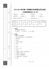 第1页,共4页………○…………○………装…………○…………订…………○…………线…………○…………-院系:专业班级:学号:姓名:座位号:-2013-2014学年第一学期期末考试答案及评分标准《计算机网络技术》(B)卷题号一二三四五总分评卷人分值30202426100得分一、选择题(每小题2分,共30分)1—5DBDCC6—10BCCBC11—15DCBDC二、填空题(每空1分,共20分)1.集中式计算机网络、分布式计算机网络2.波分复用3.全双工4.应用层、会话层5.HTTP6.@7.内核8.172.16.7.1919.动态10.机构唯一标识符、扩展标识符11.线路子层、路径子层12.网络层、...