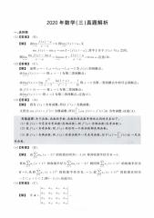 2021年数学(三)真题解析一、选择题(1)【答案】(C).r^231r~r23【解】由|(er—l)dr〜|Z3df=—jr8(j;-*0)得|(e‘—l)d?为d的高阶无穷小,JoJo4Jo应选(C).(2)【答案】(D).eJ——1【解】因为lim/1(工)=lim--------=1=/(0),所以/(^)在z=0处连续;由応空2二£02=恤-----=[曲匚二[二工=Mm笃二得厂(0)=斗工0,x->ojcx-*ojc工一0jcx-*oLxZL应选(D).⑶【答案】(A).【解】因为f⑺=g-61n工有两个零点,所以由罗尔定理,存在cE(0,+^),使得/"'(c)=a------=...