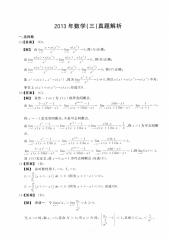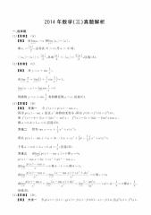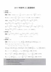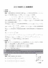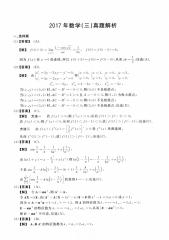 2017年数学(三)真题解析一、选择题(1)【答案】(A).【解】/(O+0)--lim-----=丄,/(0)=/(0—0)=6,lo+axLa因为/(j:)在攵=0处连续,所以/(0+0)=_/(0)=/(0—0),从而ab=*,应选(A).(2)【答案】(D).[解]由得严=1,$=0,[工=3,Iz;=3工一2工夕一攵?=01)=0,1y=l,\y=3,13/=0.zfxx=一2y,z'xy=3一2z—2y,z'yy=一2x,当(jc,y)=(0,0)时,AC—B2=—9VO,则(0,0)不是极值点;当(工,夕)=(1,1)时,AC-B2=3>0且A=-20,从而/'(1)>/(-1)...