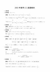 2001年数学(三)真题解析一、填空题⑴【答案】-j.1_a_【解】当Q=1时,由ALaK^l,,则K对L的弹性为dK/dLaK/L=~J'(2)【答案】=1.2W「t+2.【解】由题意得W,满足的差分方程为W’=1.2W—+2.(3)【答案】一3.【解】口丨=住+3)住一1尸,因为r(A)=36}=P{|(X+Y)-E(X+Y)|>6}<―=—.6丄Z(5)【答案】F,(10,5).X【解】由X,〜N(0,4),得〒〜N(0,1)(<15),于是#(X[+・・・+XG~X2(10),+-+X15)~/2(5),再由+(x+・.+XG与+(X£+…+XG独立,得y(X^+-+X?o)/lO£-...