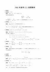 1992年全国硕士研究生入学统一考试数学(三)(科目代码:303)一、填空题(本题共5小题,每小题3分,满分15分.把答案写在题中横线上.)(1)设商品的需求函数为Q=100-5P,其中分别表示需求量和价格,如果商品需求弹性的绝对值大于1,则商品价格的取值范围是________•00/n\2n(2)级数工U…的收敛域为________.n=l皿flfJ2—J(3)交换积分次序dy)dj?=________・J0J^/~y(4)设A为m阶方阵,B为"阶方阵,^.|A\=a,\B\=b,C=,贝0|C|=________.(5)将C,C,E,E,I,N,S等七个字母随机排成一行,则刚好排成英文单词...