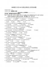 第1页共7页贵州财经大学2018年硕士研究生入学考试《翻译硕士英语》试题PARTIVOCABULARYANDGRAMMAR(30%)Directions:Therearetwentysentencesinthissection.BeneatheachsentencetherearefourwordsorphrasesmarkedA,B,CandD.Chooseonewordorphrasethatbestcompletesthesentence.1.What’sthechanceof______awhiteChristmasthisyear?A.therebeingB.theretobeC.t...