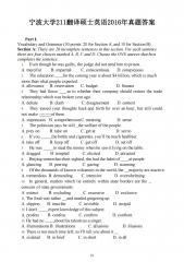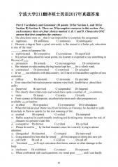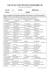宁波大学211翻译硕士英语2019年真题答案PartIVocabularyandGrammar(30points:20forSectionA,and10forSectionB)SectionA:Thereare20incompletesentencesinthissection.ForeachsentencetherearefourchoicesmarkedA,B,CandD.ChoosetheONEanswerthatbestcompletesthesentence.1、Andrewwantedtobetransferredtoanotherdepartment,butherapplicat...